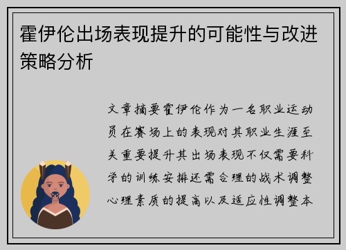 霍伊伦出场表现提升的可能性与改进策略分析